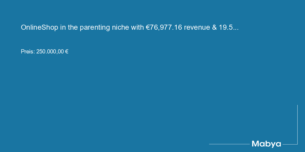High-potential online store in the parenting niche, built on a profitable dropshipping model and direct-to-consumer sales via its own Shopify store. In just 48 days the business generated €76,977.16 in revenue with a steady margin of 19.51%, while requiring only approximately 16 hours of work per week. All operations are optimised for remote management, enabling ownership and management from anywhere. Recent marketing activity demonstrates strong traction, and the brand’s early success validates the concept while leaving substantial growth opportunities in Germany and other European and international markets. The asking price of €300,000 reflects the brand’s rapid performance and clear scalability potential.