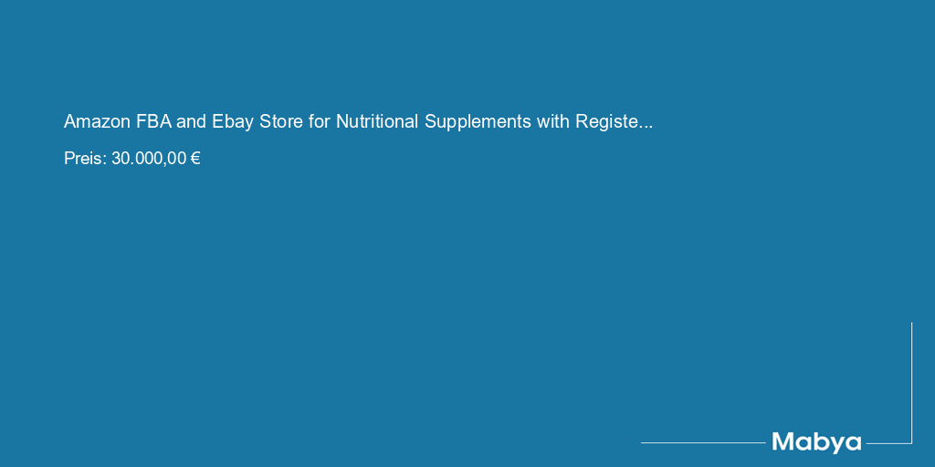 A: An established nutritional supplements store selling on Amazon FBA and eBay, including optimized product listings, customer reviews, and existing operational processes.