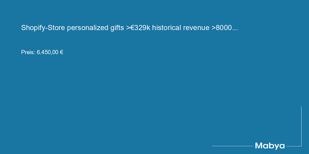 Shopify-Store personalized gifts >€329k historical revenue >8000 customers