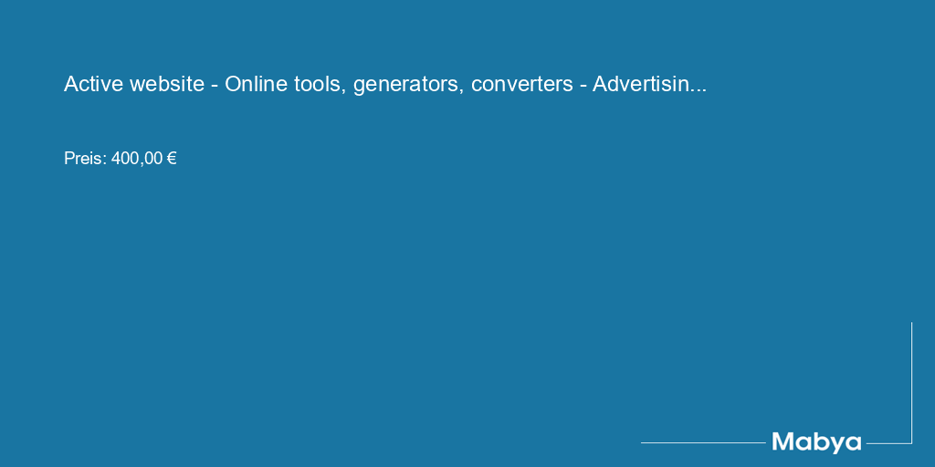 High-value online property offering a live website featuring a suite of tools, generators and converters with monetization potential through advertising. The site is supported by a database, attracts diverse markets and audiences, and requires minimal monthly investment and flexible management time. This is an ideal acquisition for buyers seeking an established digital asset with low operating costs and straightforward monetization options.