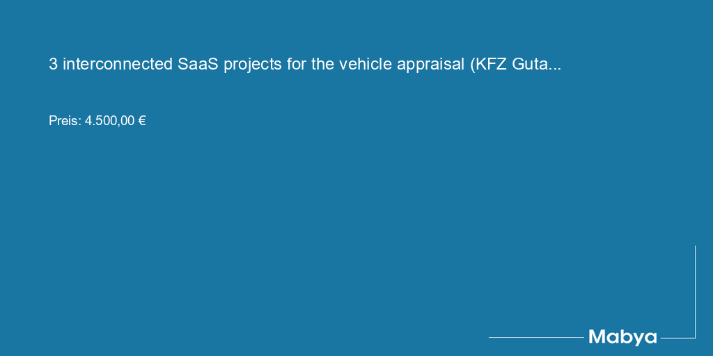 Three interconnected SaaS projects built for the German vehicle appraisal (KFZ Gutachter) market are offered as a single package. These fully developed platforms form a cohesive digital ecosystem addressing lead generation, referral network digitization, and workflow/report automation for appraisers, lawyers and workshops. The systems are operational, largely automated, and were developed in-house by an AI-enabled digital agency. The package includes an established, revenue-generating lead marketplace, a referral network platform in pre-revenue stage, and a CRM/reporting SaaS in functional beta. The seller is offering the complete package because in-house client demand prevents further development. The projects have clear monetization paths, low weekly maintenance requirements, and significant scaling potential—particularly by increasing advertising spend and active market growth efforts.