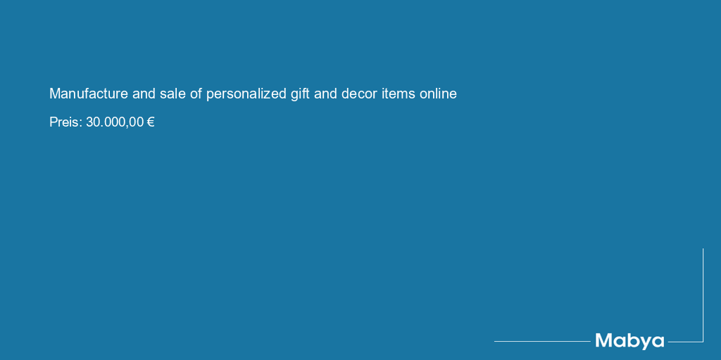 Handcrafted, laser-engraved gift and decor business with an established online presence, specializing in personalized stationery and decorations for weddings, birthdays, and celebrations. The portfolio includes over 200 curated items—gift boxes, wreaths, decorative signs, keepsakes and personalized gifts—sold through a dedicated online shop for more than nine years. The business benefits from a loyal returning customer base since 2017 and a contact database of over 30,000 entries. Production delivers highest-quality finished products with short turnaround and fast delivery times. The shop is already optimized for product listings, search visibility and customer reviews, providing a ready-made foundation for growth. The business is fully established and offers significant expansion potential; a transition period is available.